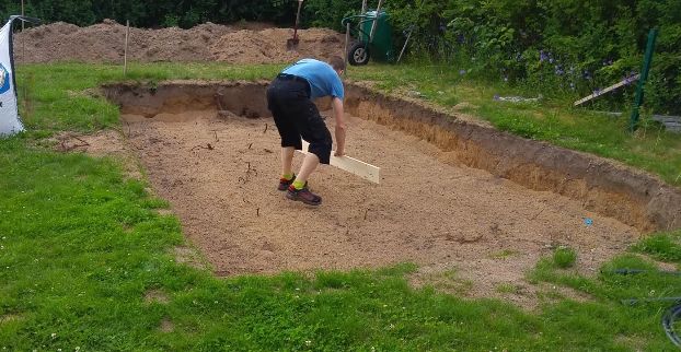 След като е избрано подходящо място, то трябва да се разчисти. Тревата се коси, дърветата се отсичат и пъновете се изкореняват. Мястото се нивелира — за проверка могат да се използват измервателни инструменти (нивелир или воден нивелир).