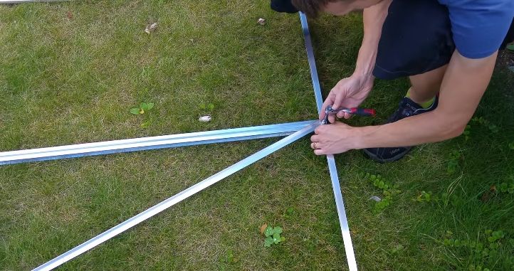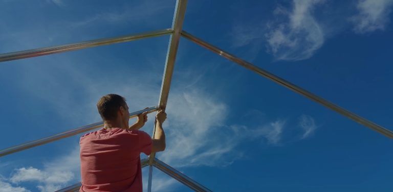 - от поцинковани профилирани тръби чрез свързването им с помощта на болтове, заваряване или самонарезни винтове (стъклото се фиксира с лепило или алуминиев затягащ профил).