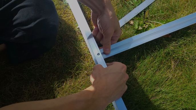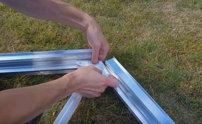 Металните секции се сглобяват ръчно с помощта на скоби. Компонентите се съединяват с точкови заварки, а съединенията се заваряват по цялата височина. Завършената рамка се закрепва към основата с дюбели. Монтажът на стъклото е подобен на този върху дървена рамка.