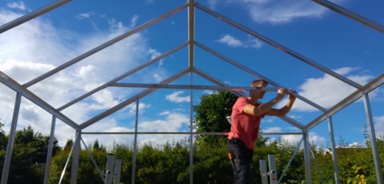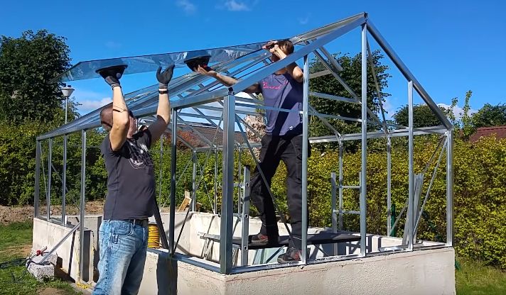 Средно сглобяването на оранжерия отнема 2-3 дни. Основата трябва да е на мястото си, а дървените компоненти или стоманените секции трябва да бъдат предварително сглобени.
