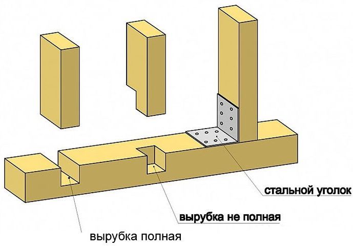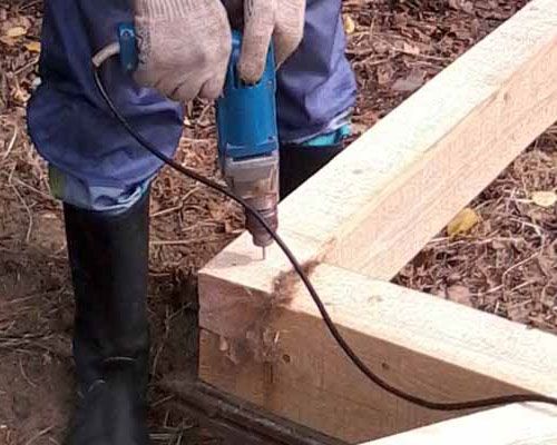 - долната носеща греда е сглобена (използват се греди с напречно сечение 6*6 см);