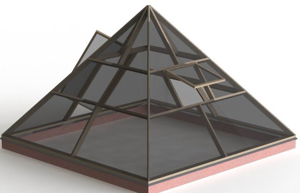 - Пирамидална - по отношение на сложността е междинна версия между фронтонната и куполната версия.