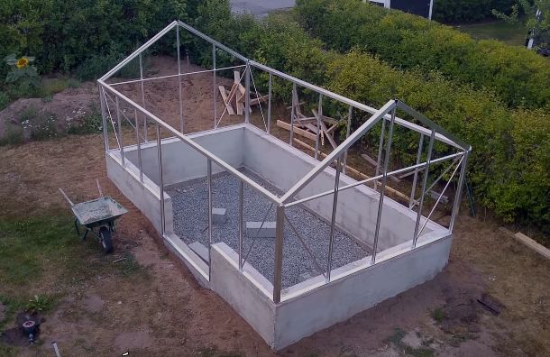 Изграждането на метална оранжерия изисква солидна основа. Процесът може грубо да бъде разделен на няколко етапа: