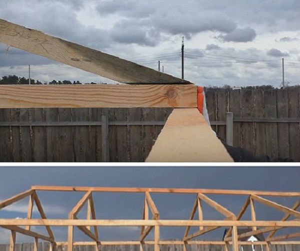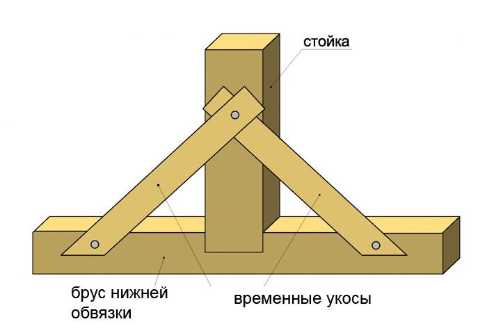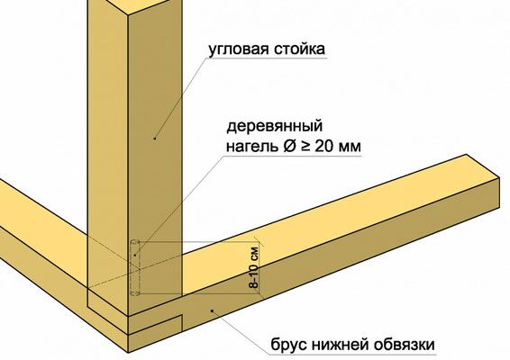В краищата на фронтона на конструкцията, към горната греда на рамката от двата края е закрепен вертикален стълб. Препоръчително е да се закрепи или с помощта на съединителна фуга от равнина до край, или с метални крепежни плочи.