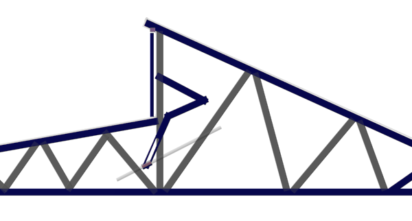 Компонентите на покрива (триъгълници на гредите) се сглобяват на земята съгласно предварително изготвен чертеж. Монтажът започва с монтирането на триъгълниците по стените. Първо се завършва фасадата на сградата, след това задният покрив и входът. Стълбовете и напречните греди се закрепват с скоби и дистанционни елементи.