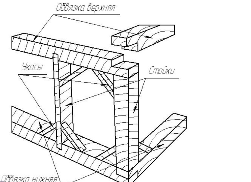Необходимите компоненти са изработени от дървен материал, включително четири греди с размери 10x10 см. В рамките се изрязва жлеб за стъклените панели с помощта на фреза. След това всички дървени компоненти се обработват поне два пъти с хидрофобна и антисептична импрегнация.
