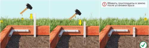 Гредата, прикрепена към земята с пръти, е монтирана върху дренажна подложка и хидроизолация, изработена от покривен филц.