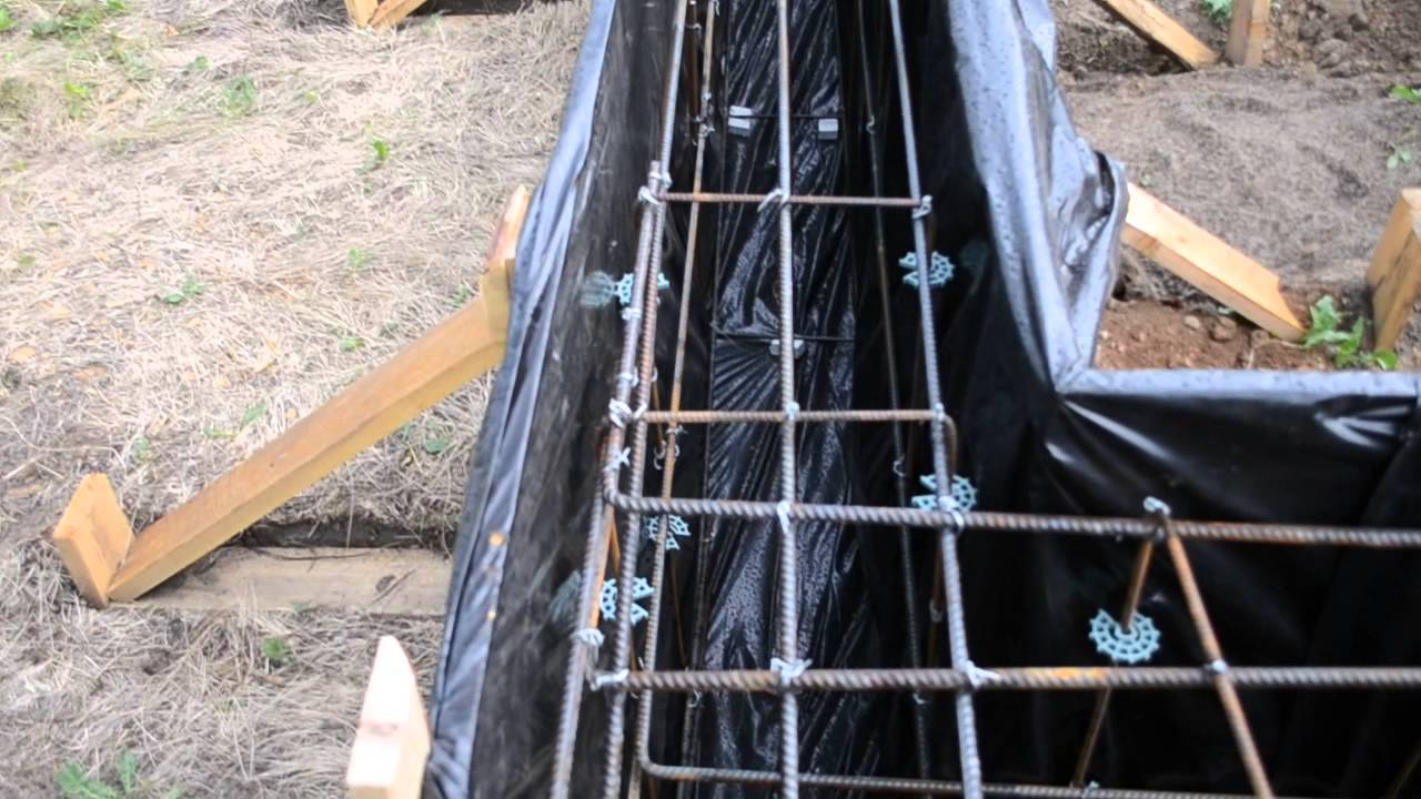 За укрепване на лентовия фундамент се използва армировка. Рамка с размери 15 х 20 см се оформя от стоманени пръти с дебелина 8 мм със свързващи елементи, разположени на разстояние 30 см един от друг. Те се закрепват със заваряване или анкери. По време на монтажа трябва да се внимава да се избегне всякакъв контакт между армировъчните елементи и хидроизолационните елементи. Поради тази причина металната рамка се монтира върху греди с височина 3,5-4,5 см.