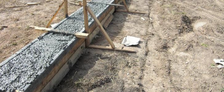 След това, бетон клас M200 се изпомпва в кофража с помощта на маркуч. Използва се лопата за равномерното му разпределение в изкопа. Стоманената конструкция трябва да бъде напълно запълнена. Когато е правилно излята, бетонната основа трябва да се издига на 20 см над земята (за височина на бетонната основа 30 см). Като алтернатива могат да се използват предварително вградени метални елементи.