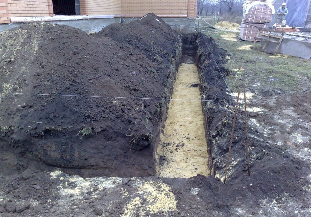 По периметъра на площадката се изкопава изкоп с напречно сечение 20 х 20 см, чиито стени и дъно се уплътняват, след което върху дъното се изсипва пясък.