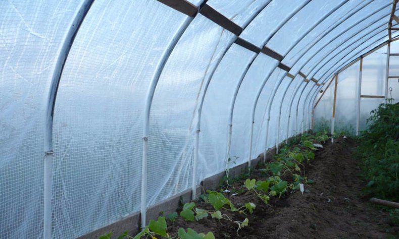 Изборът на PVC или полиетиленово фолио позволява оранжерията да се използва в продължение на 2-3 сезона (или дори 5 години). При избора на филмови материали се предпочитат термостабилизирани подсилени варианти. Те се характеризират с повишена здравина и устойчивост на слънчева радиация. Препоръчителната дебелина на фолиото е най-малко 200 микрона.