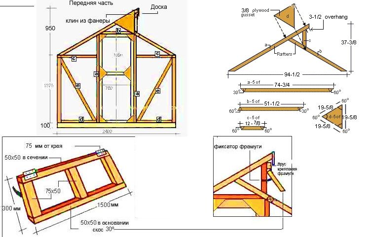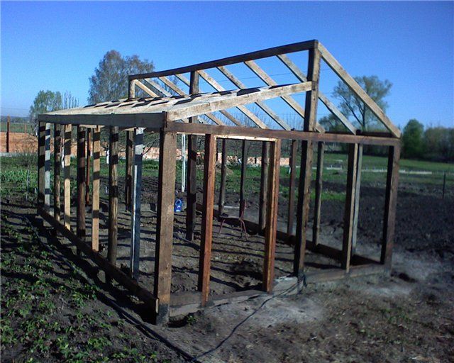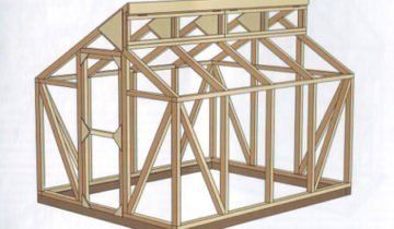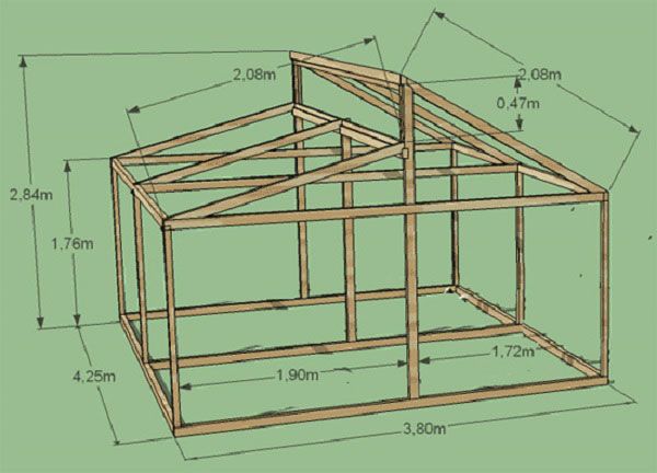 Като пример ще бъде използвана конструкция с дървена рамка и поликарбонатно покритие, висока 2,7 м, широка 3 м и дълга 6 м.