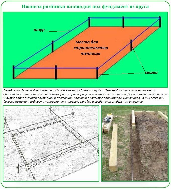 Важно е да се има предвид, че конструкцията трябва да е ориентирана от изток на запад. Избраното място се маркира с помощта на колове и въже.