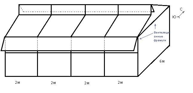 - Традиционна (канонична). Има вертикални стени и плосък покрив с два наклона. В класическия вариант конструкцията е с ширина 6 м, дължина 12 м и височина 1,8 м. Вентилационните отвори са разположени от южната страна.
