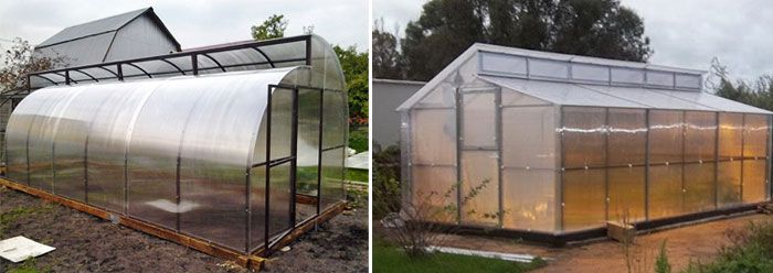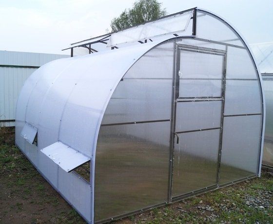 Този материал е по-скъп, но е по-здрав, по-издръжлив и по-добре задържа топлината. Препоръчват се листове с дебелина 6-8 мм. За по-студен климат се препоръчва тази дебелина да се увеличи до 1 см. За да се увеличи устойчивостта на поликарбоната на температурни колебания, както и на въздействието на вода и слънчева радиация, върху материала се нанася защитно фолио. При избора на листове, вземете предвид техните гарантирани топлоизолационни свойства и гъвкавост, което е особено важно за сводести конструкции.