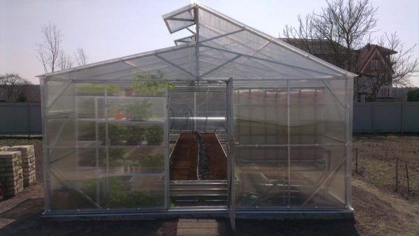 Обикновено за покриване на оранжерията се използва клетъчен поликарбонат или полиетиленово фолио.