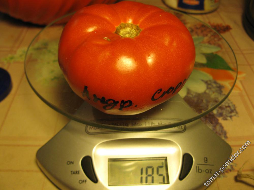 Посях разсада в средата на март и кълняемостта беше отлична. Разсадът се разви добре и беше пресаден в оранжерията в средата на май. Въпреки че височината е посочена като 1,5 метра, храстът порасна до почти 2 метра. Добивът е среден. Дава множество едри, красиво оформени плодове. Плодовете узряха без да се напукат. Снимката не улавя напълно цвета; в действителност това е богат, ярък домат.