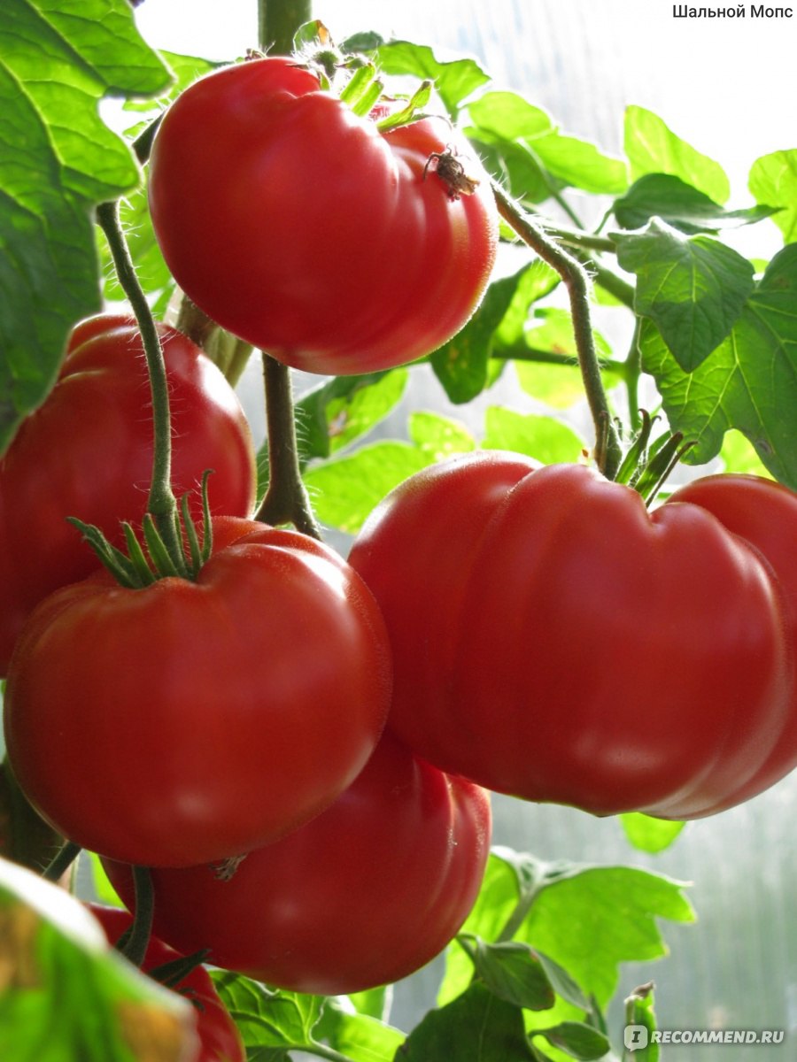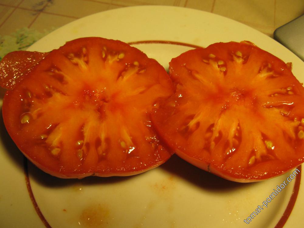 Къснозреещ индетерминантен сорт за оранжерии (може да се отглежда на открито на юг). Подходящ за салати, сокове и доматено пюре. Разсадът понася добре условия на слаба светлина. | Плоско-кръгли, гладки, със средна плътност, розови, 150-230 г. Отличен вкус. |