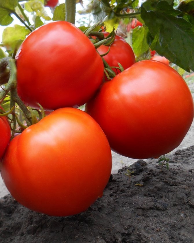 Средно ранен детерминантен сорт за открита земя и оранжерии (само оранжерии, според регистъра). Подходящ за салати, консервиране, мариноване и сок. | Кръгли, големи, леко оребрени, със средна плътност, червени, 200-250 г. Отличен вкус. |