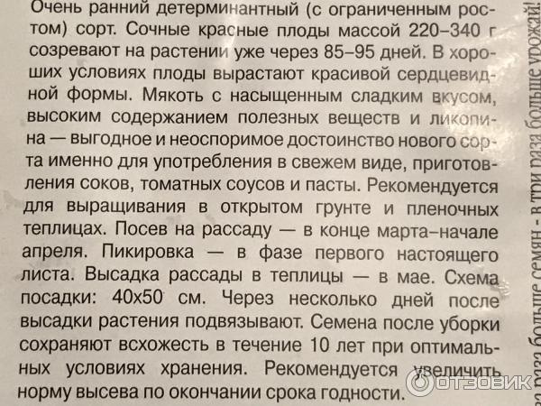 | Период на зреене | 85-95 дни (оранжерия), около 100 дни (открита земя) |