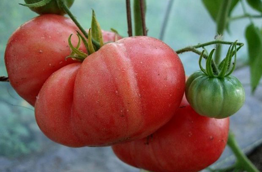 Среднозреещ индетерминантен сорт за оранжерии и открита земя. Подходящ за салати и консервиране. | Сърцевидни, оребрени, розови, 300-600 г (до 1200 г). Отличен вкус. |