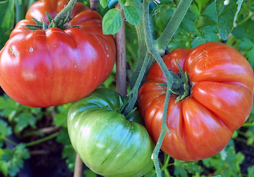 Среднозреещ индетерминантен сорт за открита земя и оранжерии. Изисква подравняване и оформяне. Подходящ за салати. | Плоско-кръгли, средно оребрени, със средна плътност, червени, 300-400 г. Добър вкус. |