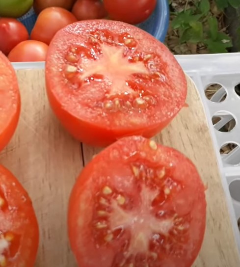 Семена от "Поиск". Много красиви, сърцевидни, червени домати. Добивът е отличен. Вкусът е просто невероятен.