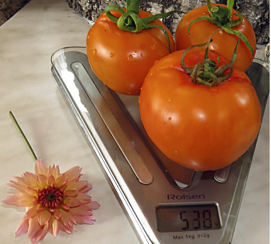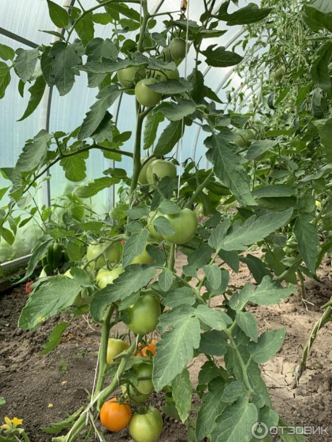 В торбата имаше 10 и точно половината от тях поникнаха. Засадих едно в оранжерията и то узря първо.Тази година беше екстремна за градинарите: студена и дъждовна пролет, последвана от необичайно горещо лято, но дори и при тези условия доматите се представиха добре. Завръзването на плодовете е с порядък по-високо от това на други оранжерийни сортове.