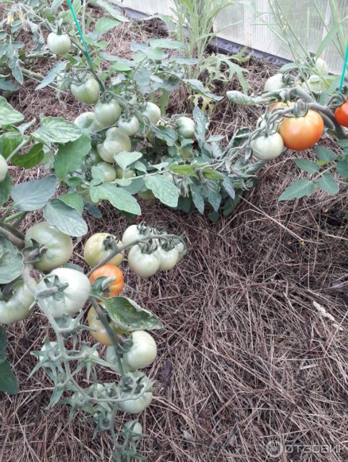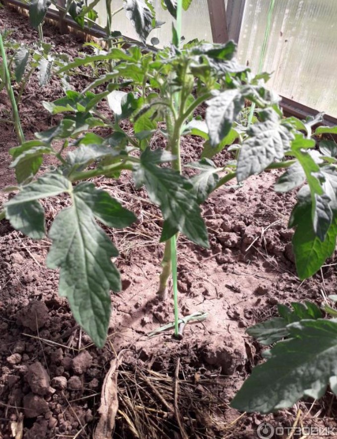 Храстът не е много висок, около 80 см в оранжерията. Няма много листа, така че не е нужно да го прищипвате. Препоръчително е да ограничите растежа след петия клъстер, но аз закъснях с това и доматите не се получиха много големи, но може би това не е причината.