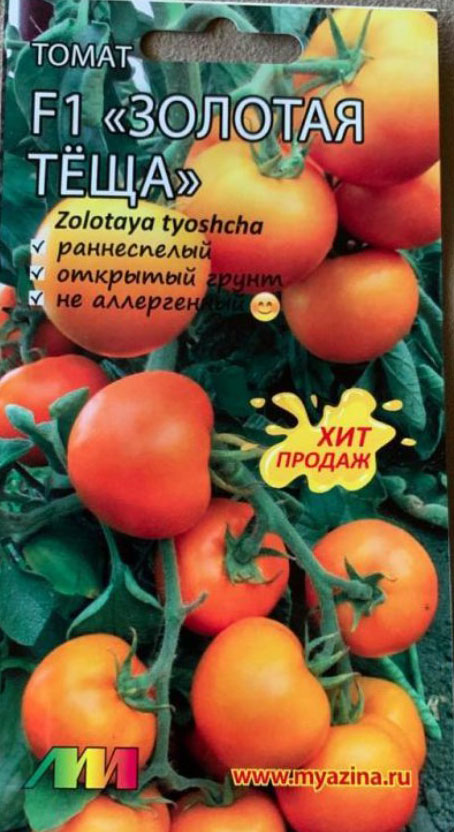 Златна свекърва F1, селекция AC. Много ми хареса този сорт; дава еднородни, средно големи плодове, 12-15 на растение. Вкусът е добър. Този сорт е подобен на любимия ми, Златно сърце. Планирам да го засадя тази година. Отгледах го на открито.