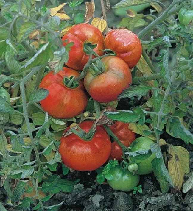 Индетерминантен сорт с много едри плодове, които узряват в рамките на 123-128 дни след засяването. 🌱🍅 Добивът от този сорт е впечатляващ, вариращ от 2000 до 2400 цента на хектар. Растенията от този сорт растат великолепно, достигайки височина до 270 сантиметра. За да поддържат този растеж, те се нуждаят от подпори, жартиери и формоване. 🌿🍅 Формата на плодовете е овално-кръгла, а кората е плътна, което ги прави здрави и устойчиви на повреди. Всеки плод тежи около 350 грама, което ги прави едни от най-големите сред доматите. 🌟🍅 Тези домати имат отличен вкус, идеални са за консумация в прясно състояние, както и за приготвяне на сокове и пасти. Въпреки това, те не са подходящи за консервиране на цели плодове поради големия си размер. 🍅🌱