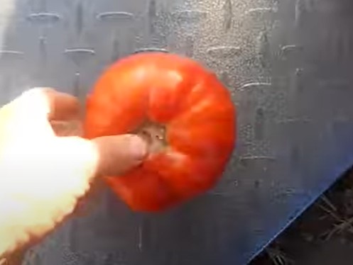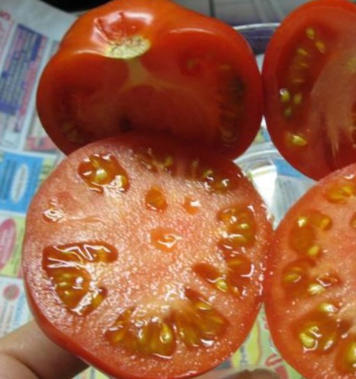 След като доматите позеленеят, на мястото, където се прикрепва стъблото, се забелязва тъмно изумрудено петно. След като узреят, доматът става червен. След това петното изчезва. Можете да видите как изглежда сортът на снимката.