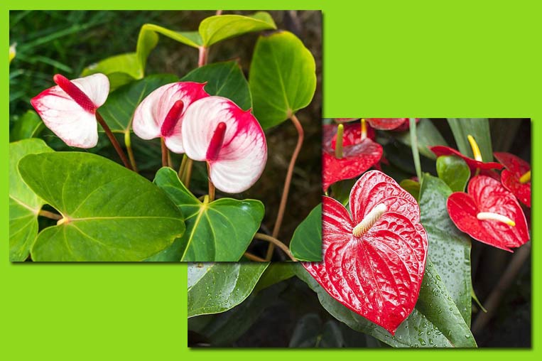 Това цвете е наричано „мъжко щастие“ заради уникалната си структура. То образува пъпки независимо от сезона, радвайки с изобилие от цветове. Антуриумът предпочита влажна почва и цъфти при температури над 15 градуса по Целзий. Вирее както на слънчеви первази на прозорците, така и в сенчести части на стаята. Цветовете му, в зависимост от сорта, могат да бъдат в най-различни цветове, а листата му са лъскави и големи.