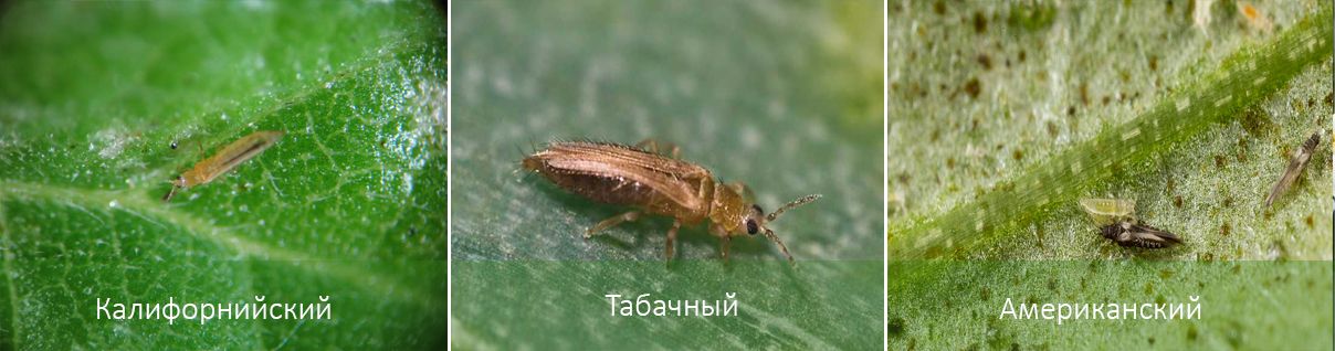 | Калифорнийски или западен флорален | Един от най-големите представители на този вредител, той расте до 0,2 см. Светложълтият му оттенък е отличителен; ларвите са много по-наситени. Гнезди върху венчелистчетата и листата на орхидеите. Вирее при стайна температура. | Той е носител на доматен вирус, който е опасен за цветето и причинява обезцветяване на листата. |