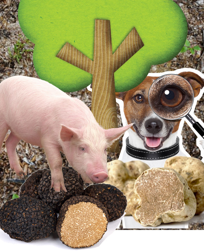 В началото това са били прасета, но те бързо се уморяват от „тихия лов“ и не са склонни да предават улова си, предпочитайки да го изядат сами. Така че сега кучетата ловуват трюфели. У нас през 80-те години на миналия век са се опитали да използват мечки за тази цел, но проектът се оказа твърде скъп.