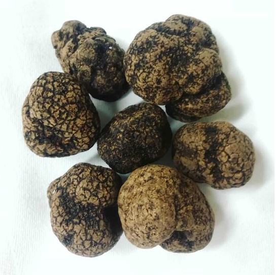 | Китайски трюфел (Tuber sinensis) | Тялото е грудесто, с диаметър до 9 см. Цветът на повърхността е тъмносив или кафяв, текстурата е оребрена. Месото е мраморнокафяво. | Гъбата се яде само след сготвяване, поради много жилавата си плът. Вкусът ѝ е приятен и ядков, но е значително по-лош от другите гъби. | Декември-февруари. | Индия, Китай. Добре се съчетава с кестен, дъб и бор. |