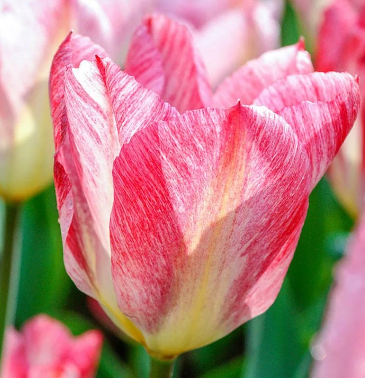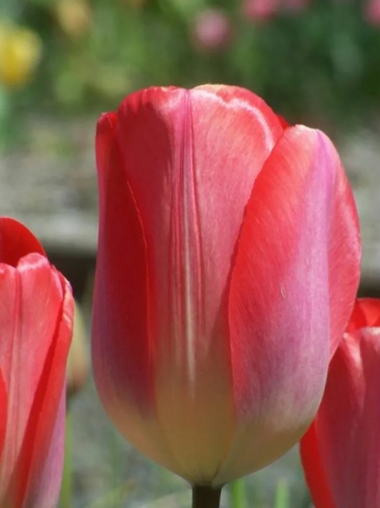 | Триумф | За първи път се появяват в цветарските магазини през 20-те години на миналия век. Създадени са чрез кръстосване на Simple Early, Darwin Hybrids и стари сортове. Не изискват внимателна грижа. Достигат до 0,7 м височина и имат гъсти цветни стъбла. | С форма на чаша, те добре държат формата си. Венчелистчетата се предлагат в най-различни тонове и комбинации. Дълготраен, може да се наблюдава от края на април до първите дни на май. |