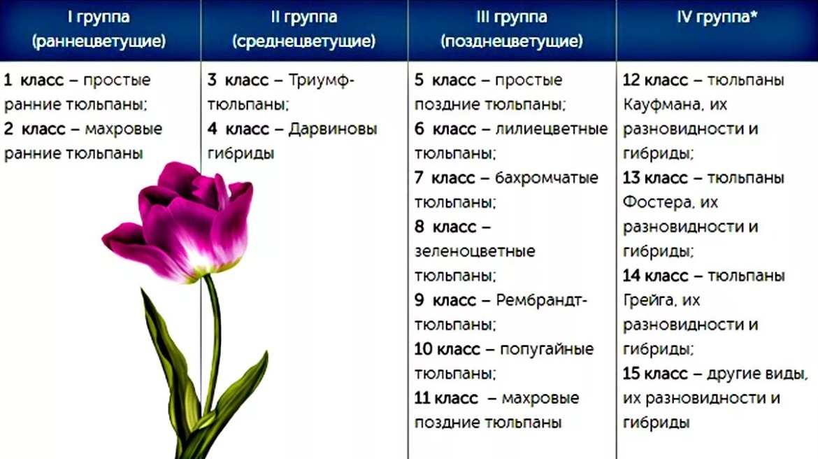 Класификация на лалетата: 4 секции, 15 класа, 122 разновидности