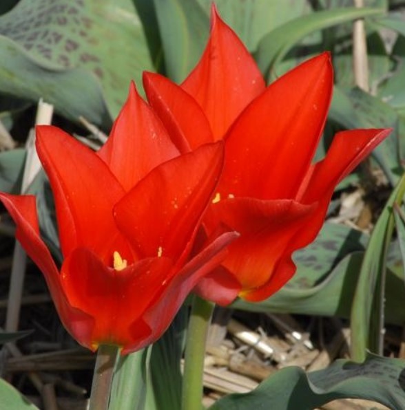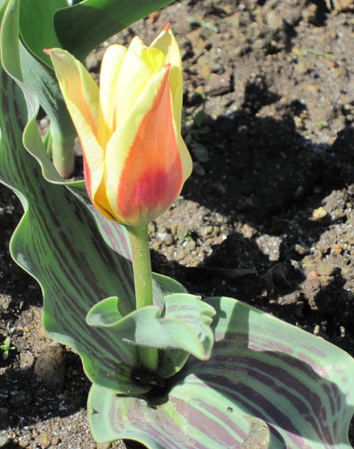 Лалетата ми започват да цъфтят - лалетата Грейг с раирани и пъстри листа (Кауфман все още не е там)
