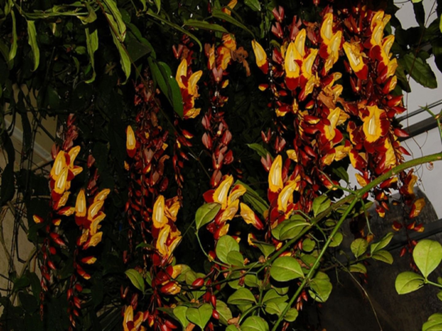 Отличава се от другите видове с пъстри жълто-червени венчелистчета (двуцветни). Достига до 5 м дължина. Цветовете са тръбести.