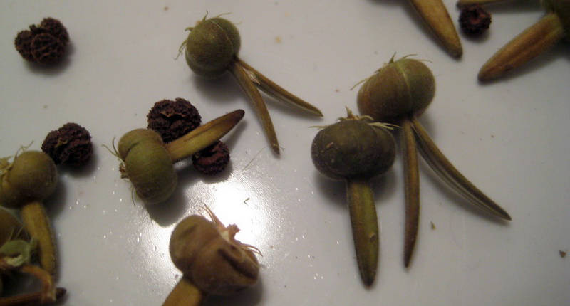 След цъфтежа, там, където са били пъпките, се образуват семенни шушулки. Те трябва да се събират, преди да се отворят и да изсипят съдържанието си. Ако се съхраняват на закрито, разрежете ги и разстелете семената върху лист хартия, за да изсъхнат. След това ги поставете в малки торбички. Те ще останат жизнеспособни до две години.