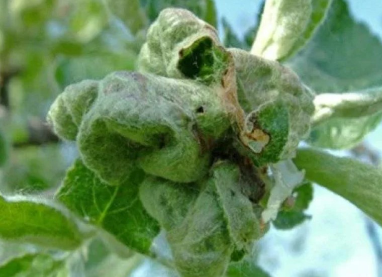 Цялата надземна част на плода е засегната. Образуват се малки петна, които след това се разширяват. Плодовете стават по-малки, втвърдяват се и се напукват. Това се отразява негативно и на общия добив. По кората на плода се появяват тъмни петна, които се сливат и образуват едно кадифено петно. | Премахнете и унищожете листата през есента. Напръскайте с разтвор на урея или бордолезова смес. | Няма ефективни лечения. |