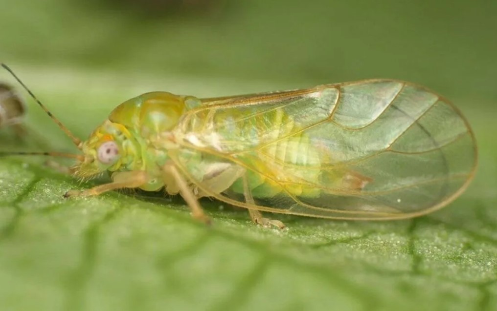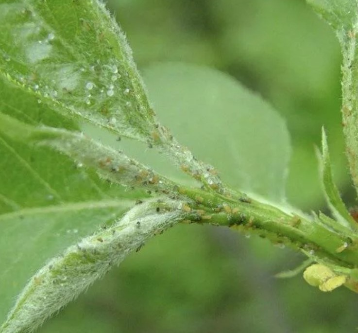 Храни се със сок и насърчава растежа на саждиста плесен. Поради липса на сок, листата, пъпките и цветните пъпки се свиват и окапват, а плодовете се деформират. | Лечение с Агравертин и Искра. Ако нападението не е тежко, народните средства ще свършат работа. | |