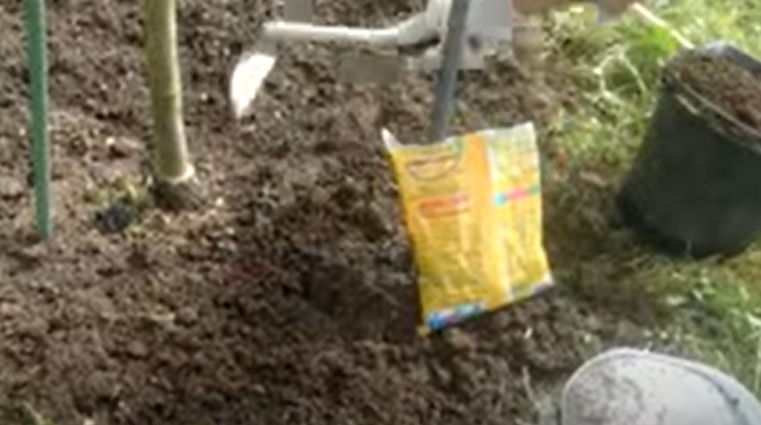 - Фиксирайте клона в това положение и го покрийте с почва.