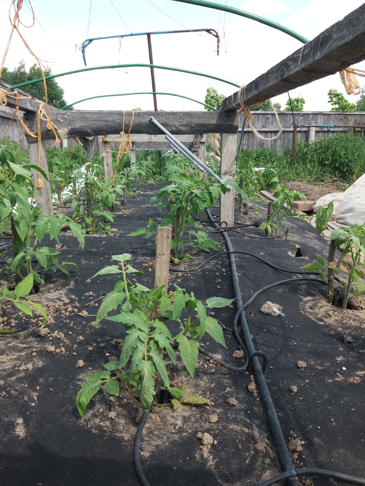 Този сорт е детерминантен и не изисква прищипване, а черният филм потиска плевелите, елиминирайки нуждата от плевене. На теория не беше нужно да ги връзваме, но решихме да го направим, за да ги насърчим да растат.