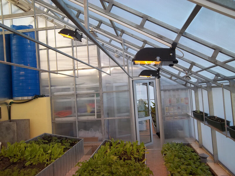 За отопление с въздух е за предпочитане да се изберат електрически нагреватели. Препоръчително е да се закрепят към рамката заедно с електрически вериги и сензори, които се задействат при спадане на температурата.