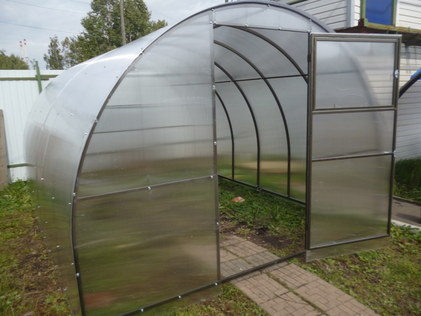 Второто съображение е изборът на материал въз основа на предназначението на оранжерията. Например, 8 мм клетъчен поликарбонат е достатъчен за покриване на оранжерия, предназначена за употреба от пролетта до есента. Ако обаче се планират култури за зимно отглеждане, се препоръчва дебелината да се увеличи до 16 мм, при условие че покритието е правилно уплътнено.