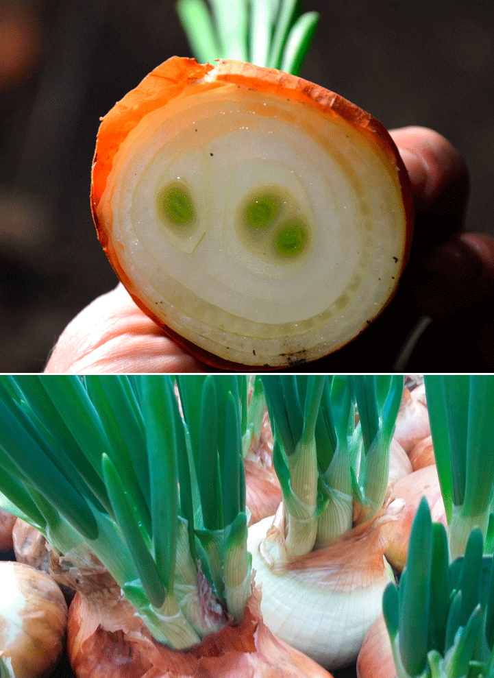За да определите броя на зачатъците, разрежете луковицата напречно. Градинарите използват тази характеристика, за да разграничат хибридите на лука.