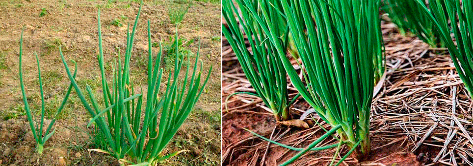 В последния случай градинарят засажда луковиците в гъсти редове. За засаждане на 1 м² са необходими около 10 кг зеленчуци. Следващата стъпка е покриването на посевите с почва.