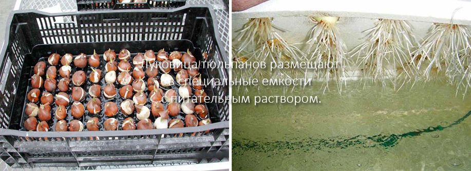 Охладените луковици (на възраст 10-14 седмици) се поставят вертикално в хидро-тави със специален разтвор на дъното. Те се съхраняват в хладно помещение (най-малко +5°C, не повече от +9°C) в продължение на две до три седмици. Ако кореновата система се развива много бързо, температурата се понижава до +2…+3°C.